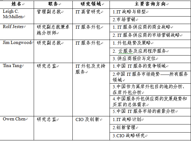 為幫助企業(yè)更好地解決中長期發(fā)展戰(zhàn)略問題,會(huì)期將開設(shè)高德納分析師一對(duì)一咨詢(30分鐘/場),計(jì)約8-12場。凡成功注冊(cè)并有意預(yù)約咨詢時(shí)段的企業(yè),請(qǐng)于8月22日(周五)前一并提交咨詢申請(qǐng)表(附件3)。最終名單由分析師審核確認(rèn)。分析師信息如下: